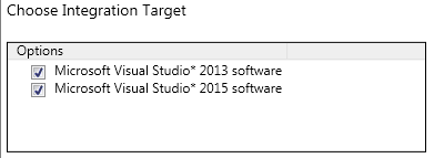 [Choose Integration Target] ページで、統合する Visual Studio* のバージョンを選択します。