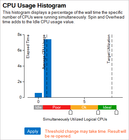 必要に応じて、インテル® VTune™ Amplifier がシステムのデータを基に設定するデフォルトのしきい値 (例: CPU 使用、並行性、フレームレートのヒストグラムなど) を変更します。