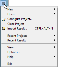 プロジェクトが開かれていると、リストのプロジェクト名をクリックすることで、最後に利用した解析設定で解析を再実行することもできます。新しい設定で解析を実行するには、[New Analysis... (新規解析...)] リンクををクリックします。 既存のプロジェクトへ結果をインポートするには、[Import Result... (結果をインポート...)] をクリックします。 現在開いているプロジェクトのターゲットと解析の設定を指定するには、[Configure Project... (プロジェクトの設定)] をクリックします。 |