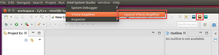 メニューから、[Intel System Studio] > [VTune Amplifier] > [Launch VTune Amplifier (インテル(R) VTune(TM) Amplifier の起動)] を選択します。