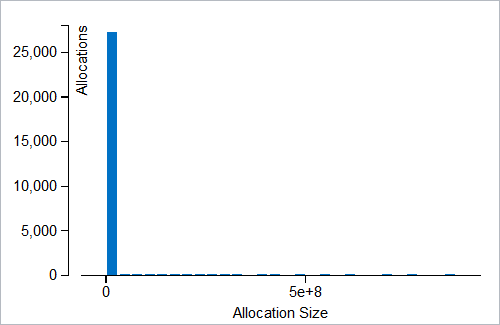 The histogram displays the number of allocations per specific sizes to help you identify the most popular memory object sizes.