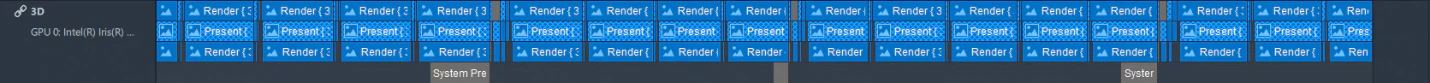 グラフィックス・トレース・アナライザーは、数秒間のゲームプレイからデータを収集して、CPU の実行タスク、GPU のレンダリング・パケット、CPU と GPU のアクティビティーを視覚化します。トレース・キャプチャーでは、通常、3 ~ 5 秒間のゲームプレイがキャプチャーされます。
