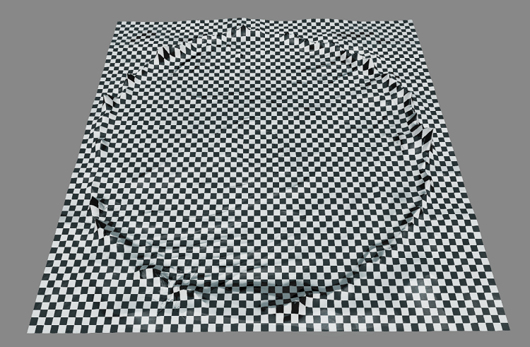 各地形タイルは、テセレーション・シェーダーでテセレーションされた M x M のテセレーション・パッチで構成されます。地形タイルの数とテセレーション・パッチの密度は、どちらも地形プロパティーで設定できます (図 8)。