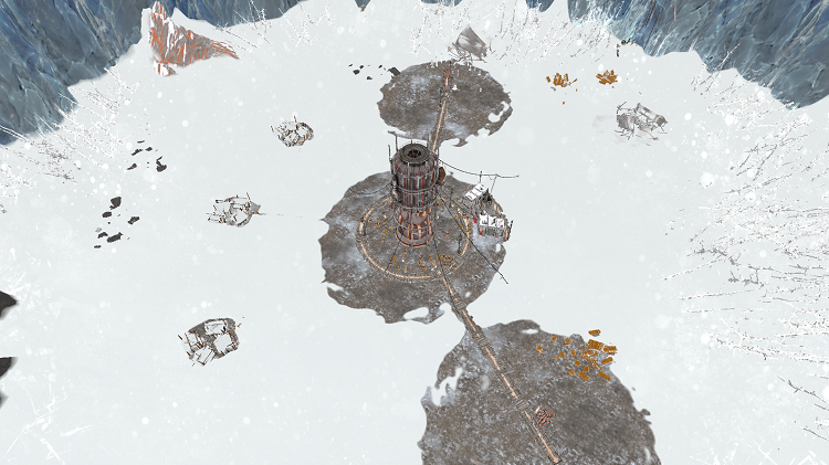 雪システムの最適化は、11 bit studios が『Frostpunk*』に対して行ったパフォーマンス向上の一例です。スクリーンショットに示すように、これは高い視覚効果品質、特に素晴らしい雪の外観を維持したまま達成されました。