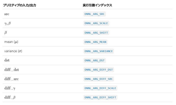 フラグと伝播の種別に応じて、レイヤー正規化プリミティブには異なる入力と出力が必要です。以下に要約します。