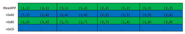 rBeadIPIF(I,2,t) rBeadIPIF(I+1,2,t) (8 分割のキャッシュライン)