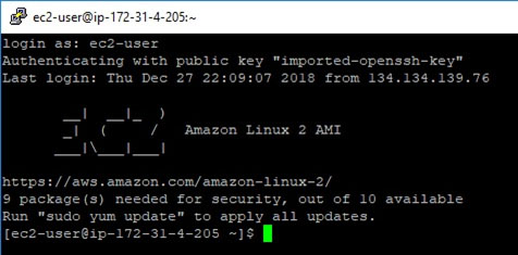 PuTTY* を使用して AWS* EC2* インスタンスへ接続: ログイン
