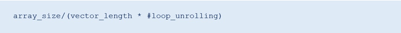実際のスピードアップを確認するには、動的/ランタイム解析を行うインテル® Advisor を使用します。コンパイラーは、ベクトル化されたループの最大トリップカウントも予測しています。以下の式を使用して、おおよそのトリップカウントを計算できます。