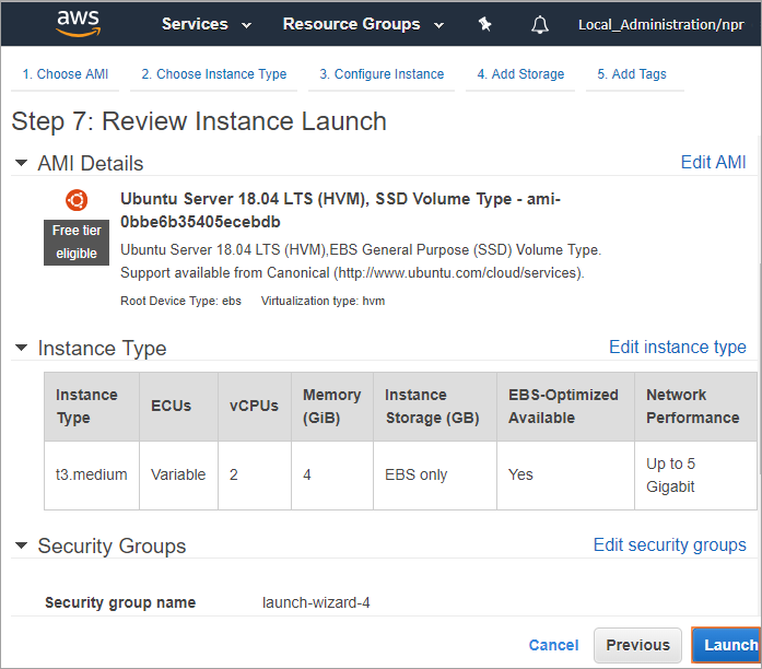 - [Step 1: Choose an Amazon Machine Image (AMI) (ステップ 1: Amazon マシンイメージ (AMI))] では、Ubuntu* Server 18.04 LTS を選択します。