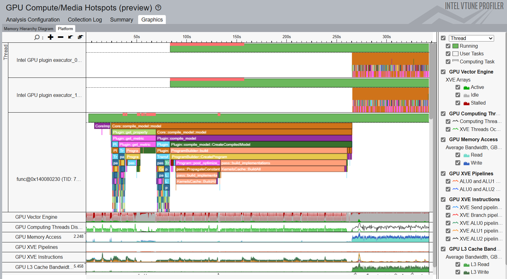 vtune -c gpu-hotspots -r <path to VTune results directory> -- benchmark_app -m model.xml -d GPU -niter 1000