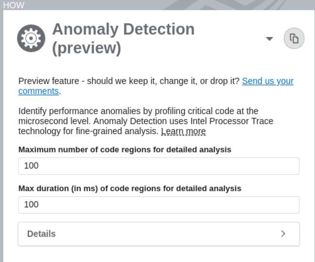 異常検出は、インテル® Processor Trace (インテル® PT) テクノロジーを使用して、プロセッサーからの粒度の細かい情報をナノ秒レベルで提供します。