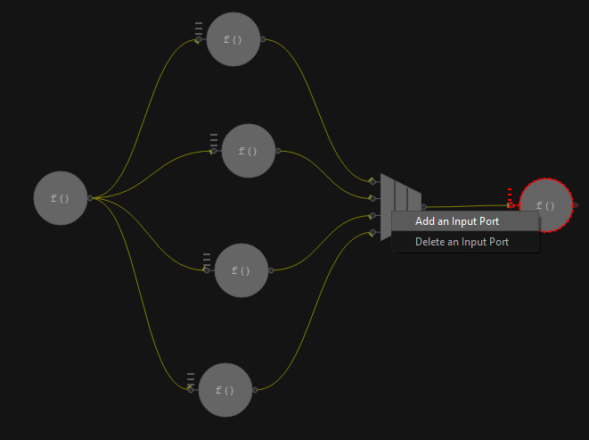 ノードの出力ポートをクリックして、別のノードの入力ポートにドラッグして、ノード間の依存関係またはエッジを追加します。