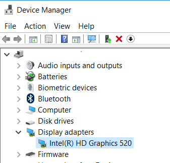 ドロップダウン矢印をクリックしてディスプレイ・アダプターを表示します。コンピューターにインストールされているアダプターが表示されます: