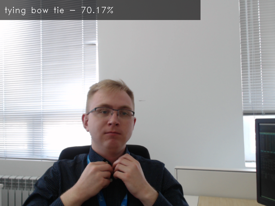 これは、Kinetics-400 データセットでトレーニングされた、エンコーダー部分とデコーダー部分で構成される汎用のアクション認識複合モデルです。エンコーダー・モデルは、ResNet34 エンコーダーを使用した Video Transformer アプローチを使用します。この複合モデルによって認識されるアクションのリストを確認するには、kinetics データセット仕様を参照してください。