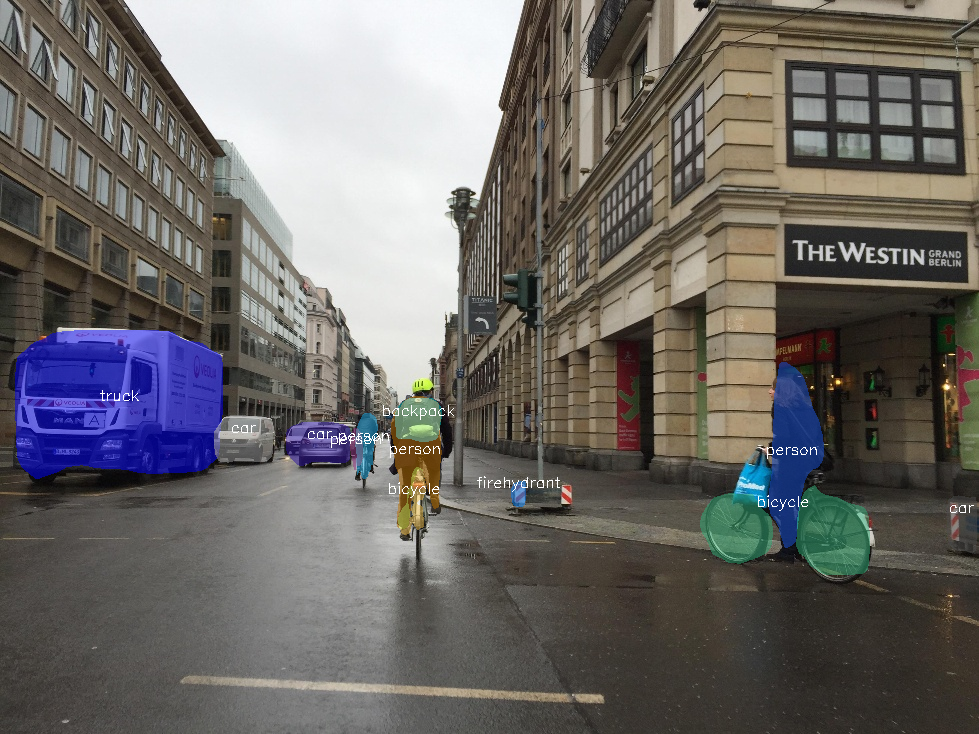 このモデルは、80 クラスのオブジェクトのインスタンス・セグメント化ネットワークです。EfficientNet-B2 バックボーンを備えたマスク R-CNN、軽量 FPN、RPN、検出およびセグメント化ヘッド。