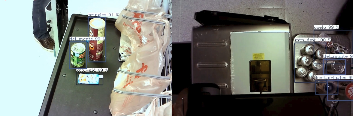 MobileNetV2 をバックボーンに SSD-lite アーキテクチャーを採用した販売関連のセルフレジ向け商品検出器。ネットワークは 12 クラスの商品オブジェクト (sprite, kool-aid, extra, ocelo, finish, mtn_dew, best_foods, gatorade, heinz, ruffles, pringles, del_monte) を検出できます。ラベル 0 と 1 は、background_label と undefined に関連付けられます。