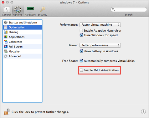 Parallels* 仮想マシンでイベントベースのサンプリング解析を有効にするには、次の手順に従います。最新情報については、Parallel* のドキュメントを参照してください。