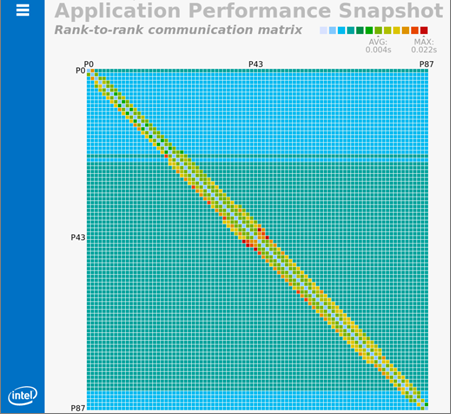 MPI の負荷インバランス: ランクが通信操作の待機でスピンに費やした CPU 時間。値が大きい場合、ランク間のアプリケーション・ワークロードのインバランス、最適でない通信スキーム、MPI ライブラリーの最適でない設定が原因の可能性があります。このメトリックは、インテル® MPI ライブラリー 2017 以降でのみ利用できます。