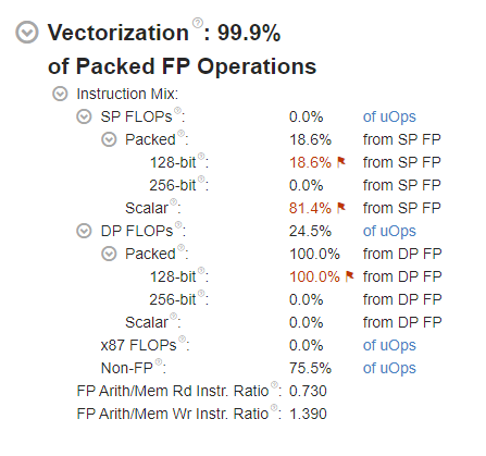 Vectorization メトリックは 99.9% であり、コードがベクトル化されていることを示しています。