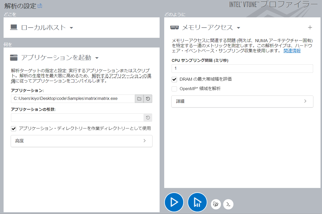 チュートリアルのこのステージでは、メモリーアクセス解析を実行して、アプリケーションのパフォーマンスが低下する主なボトルネックを理解します。