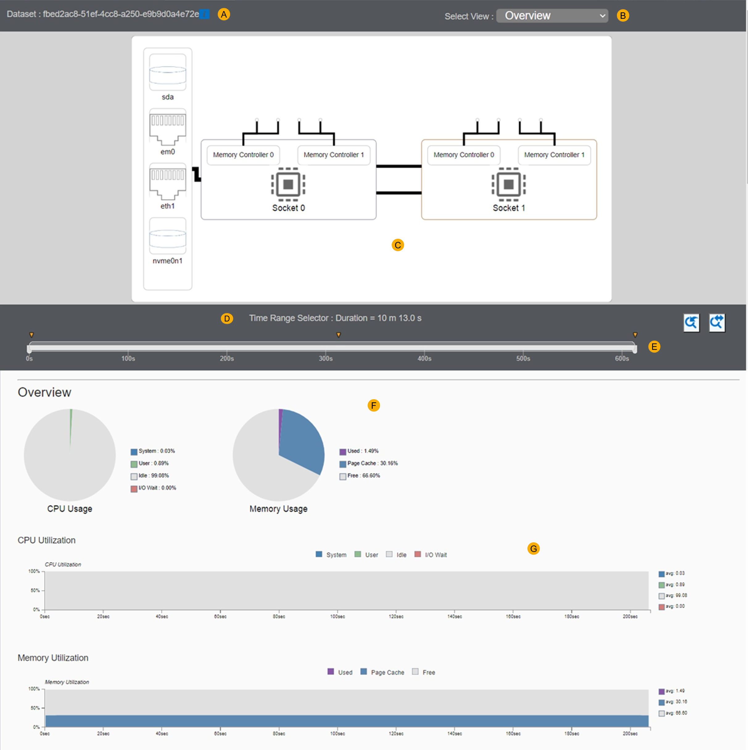 収集したデータを視覚化し、解釈するのに役立ついくつかのビューがあります。[ビューの選択] プルダウンメニューで [システム概要] を選択することから始めます。