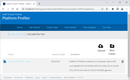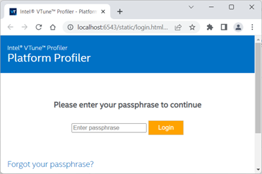 インテル® VTune™ プロファイラー・プラットフォーム・プロファイラーのサーバー・インスタンスのアドレスとポート番号をウェブブラウザーで開きます。例えば、ウェブブラウザーのアドレスバーに localhost:6543 と入力します。