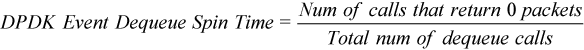 DPDK イベント・デキュー・スピン時間メトリックは、デキュー呼び出しの合計数に対する、空のデキュー サイクルの比率、またはイベントを 0 個返した rte_event_dequeue_burst() 呼び出しの数を表します。