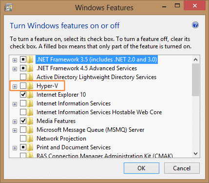 Hyper-V* 機能とサブタブの機能を無効にして、システムを再起動します。