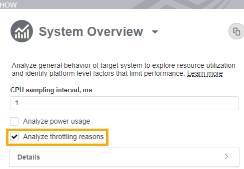 [解析の設定] ウィンドウの [どのように] ペインで、[スロットリングの原因を解析] チェックボックスをオンにします。その後、解析を実行します。