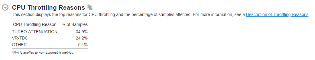 データ収集が完了したら、[サマリー] ウィンドウの [CPU スロットリングの原因] セクションをご覧ください。
