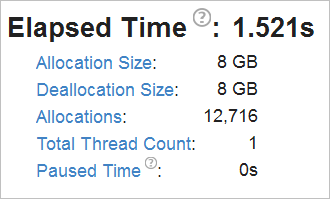解析タイプに応じて、[メモリー消費] ビューポイントの [サマリー] ウィンドウは次のアプリケーション・レベルの統計を提供します。