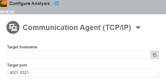 [解析の設定] をクリックして、[どこを] ペインで [通信エージェント (TCP/IP)] 接続を選択します。