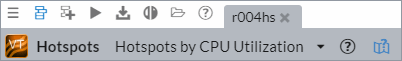 r004hs はこのプロジェクトの最初の実行結果であり、基本ホットスポット (hs) 解析のデータを含みます。ホットスポットは解析タイプ名です。CPU 利用率別のホットスポットは、下矢印で選択されたビューポイントの名前です。この矢印を使用して、この解析結果に使用できる他のビューポイントに切り替えます。 |